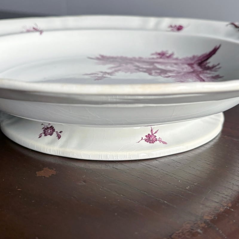 - 美術品・アンティーク・コレクション > 工芸品 > クレイユモントロー 綿毛が舞うコンポティエ A Creil & Montereau ワトー 大きめ コンポティエ コンポート クレイユ