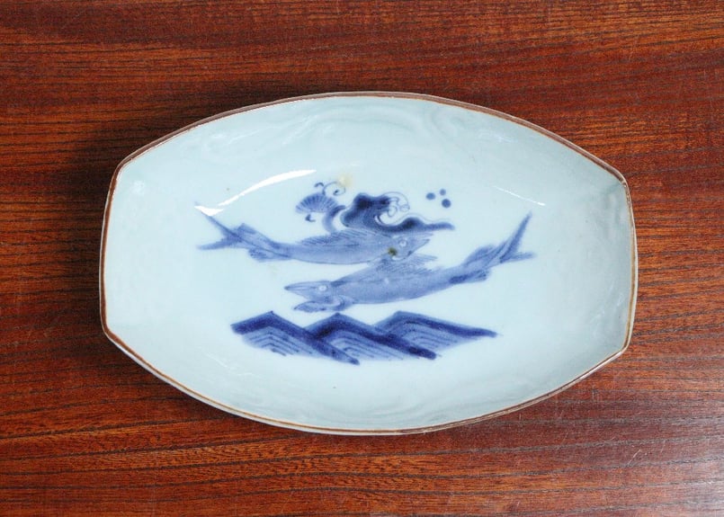 | メーカー | 切込焼 染付笹図鮎皿 19世紀 仙台藩 染付 長皿 丸紋 丸文 切込 東北 江戸中期染付鮎図舟形皿 |