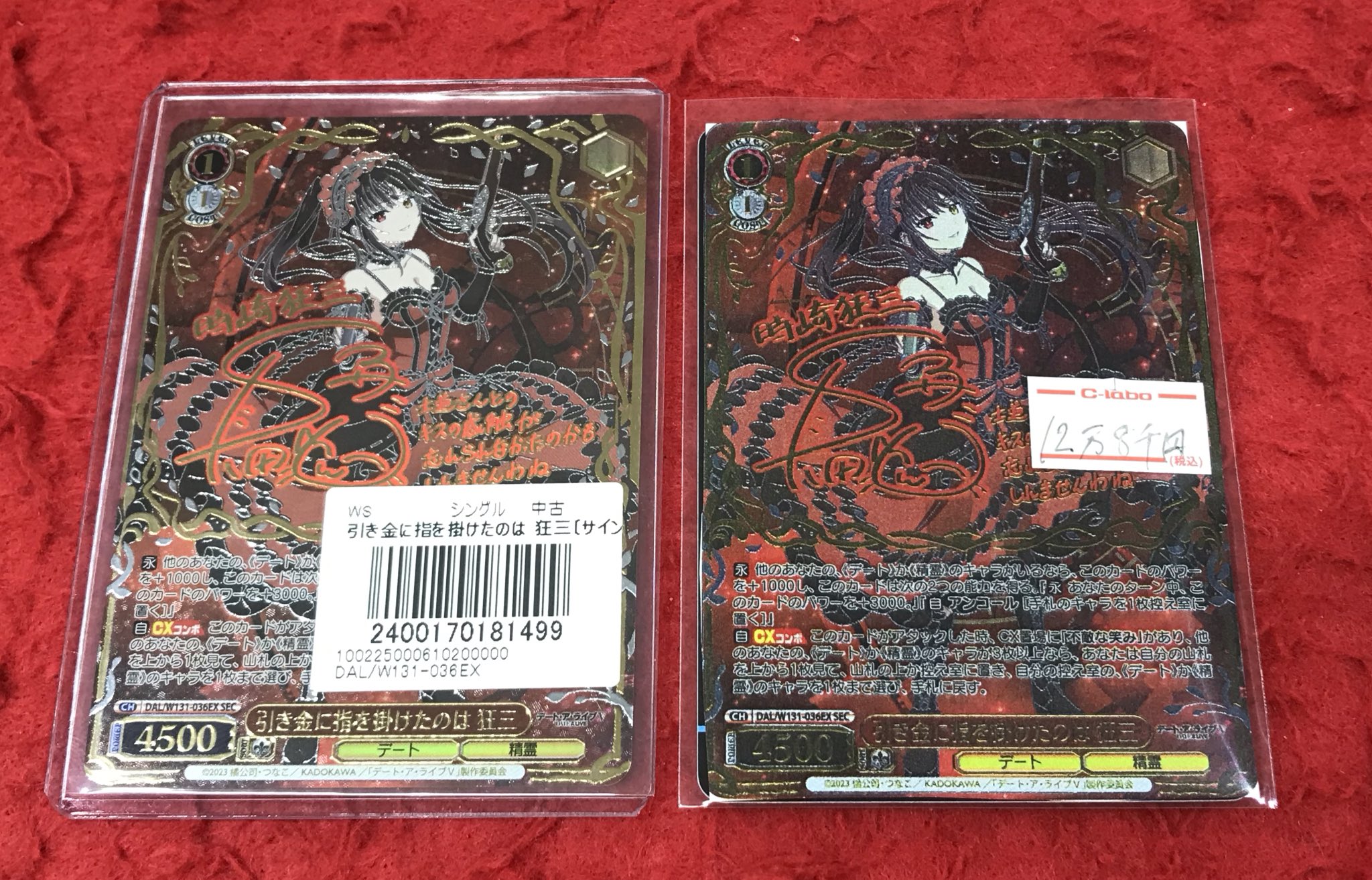 | 商品の特徴 | デート・ア・ライブ vol.3 引き金に指を掛けたのは 狂三 sec サイン。SEC 引き金に指を掛けたのは 狂三(サイン入り) 買取 | デート・ア。SEC 引き金に指を掛けたのは 狂三(サイン入り) 販売 | デート・ア。ヴァイスシュヴァルツ デート・ア・ライブ Vol.3狂三 サイン SEC自身で鑑定に出したワンオーナー品のため、確実な正規品です。鑑定から返却後、OPPに装着して厳重に保管しております。写真と同一の鑑定済み商品を発送させていただきます。鑑定番号を公開しておりますので、詳細な画像はPSAホームページからご確認ください。まれにPSAホームページから写真が確認できない場合がございますが、PSA運営のスキャン漏れなので本物であることは間違いありません。PSA10であっても完全なる美品を証明するものではございません。鑑定品のため、状態に関する回答は一律で対応いたしません。ご了承ください。鑑定会社が定めた基準の範疇であることをご了承ください。鑑定品であっても白かけや傷が存在する場合がございます。ケースの不備や本体の傷などに関しては対応しかねますので、商品の特性をご理解した上でのご購入をお願い致します。---発送に関して---高額な鑑定商品のため鑑定品をプチプチ+チャックポリ袋で包み防水に配慮して発送させていただきます。。SEC 引き金に指を掛けたのは 狂三(サイン入り) 販売 | デート・ア。ヴァイスシュヴァルツまとめ売り。ヴァイス プレミアムブースター key25th 迎春 かなで sp サイン。Happy Birthday 狂三 PR+ おまけ。ヴァイス アイドルマスター プレミアムブースター プレブ 4コン BNP 765。彼方。【BGS10/ブラックラベル】未来へと踏み出す一歩 沙花叉クロエ PSA10。【最安値】聖園ミカ(サイン入り) PSA10 SP。ヴァイス /summer pockets 鬼の嫁入り 識 サイン SP サマポケ。浅倉透 SSP ヴァイスシュヴァルツ PSA10 pop34。最安値 ヴァイス PSA10 不思議の国 チノ SSP サイン ごちうさ。インプラカブル SP | ||