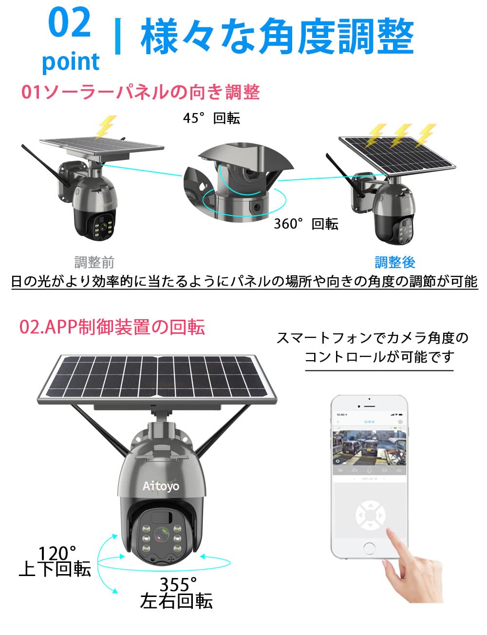 | メーカー | Aitoyo ソーラーPTZ防犯カメラ【新品、未開封】 |