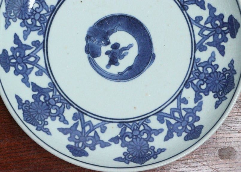 | メーカー | 古伊万里 江戸中期 コンニャク印判 墨弾きの皿 20㎝ |