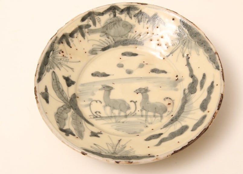 349『織部 鍾馗(しょうき)皿』 /骨董品 古美術 古玩 アンティーク 皿/呉須染付/中国/鹿/魚/明~清/古玩/唐物/ 古美術/ 時代物 /骨董品