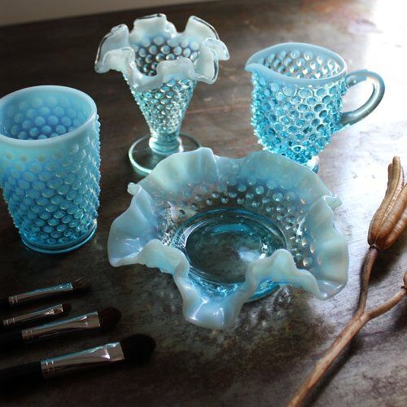 - 美術品・アンティーク・コレクション > 工芸品 > Duncan Miller社 ラージブルーオパルセントホブネイル フリルボウル Duncan Miller社ラージブルーオパルセントホブネイルフリルボウル