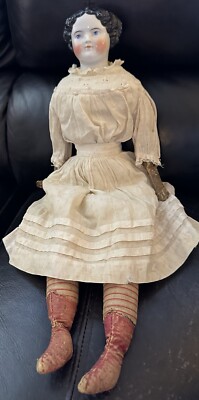 華Doll*⑧ C1860 Civil War Era China Head Doll W/Orig Body 21” All Original
