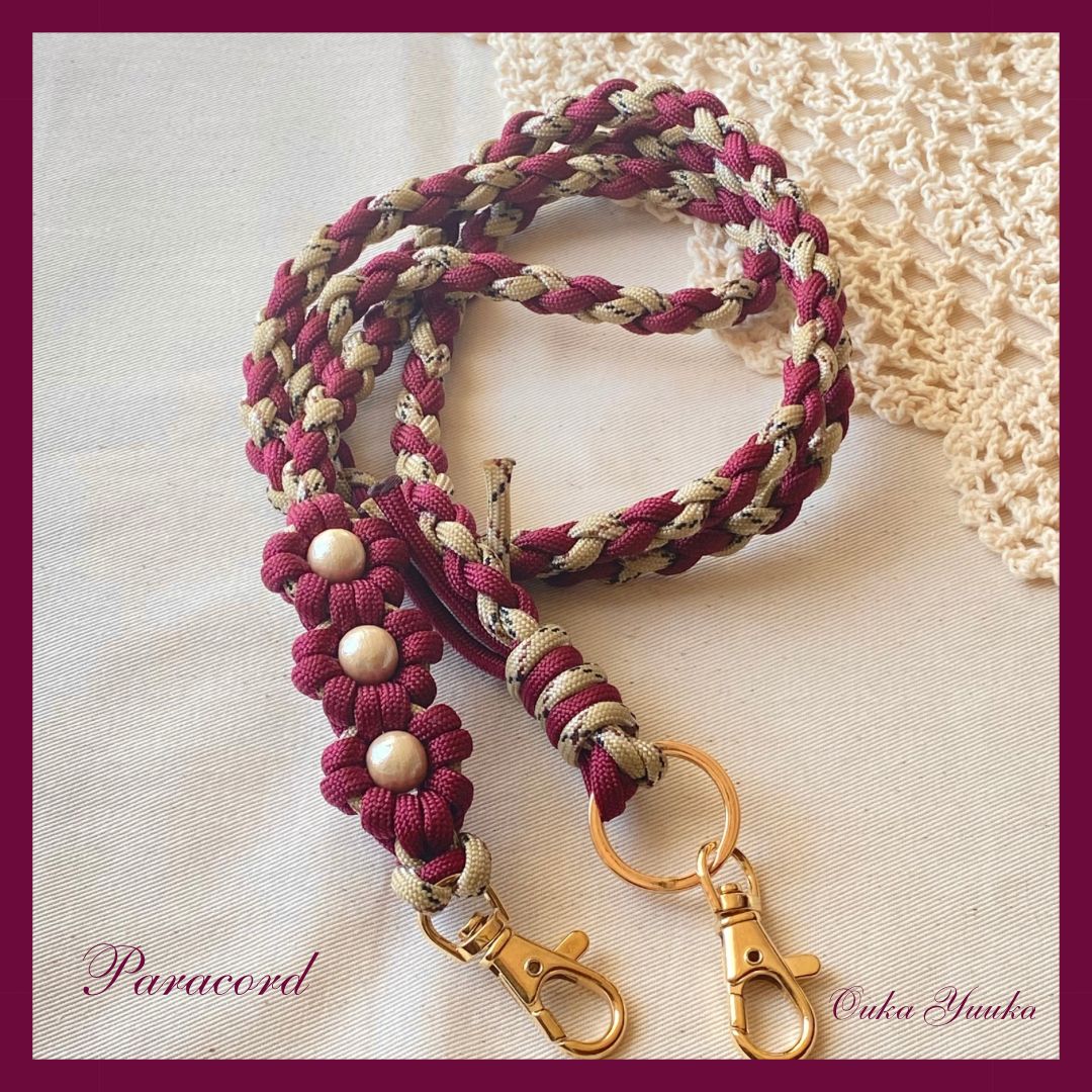 - スマートフォン・携帯電話 > スマホアクセサリー > 【ハンドメイド】パラコード・スマホ用お花柄ショルダーストラップ ツツジ】パラコード スマホショルダー ストラップ ハンドメイド お花