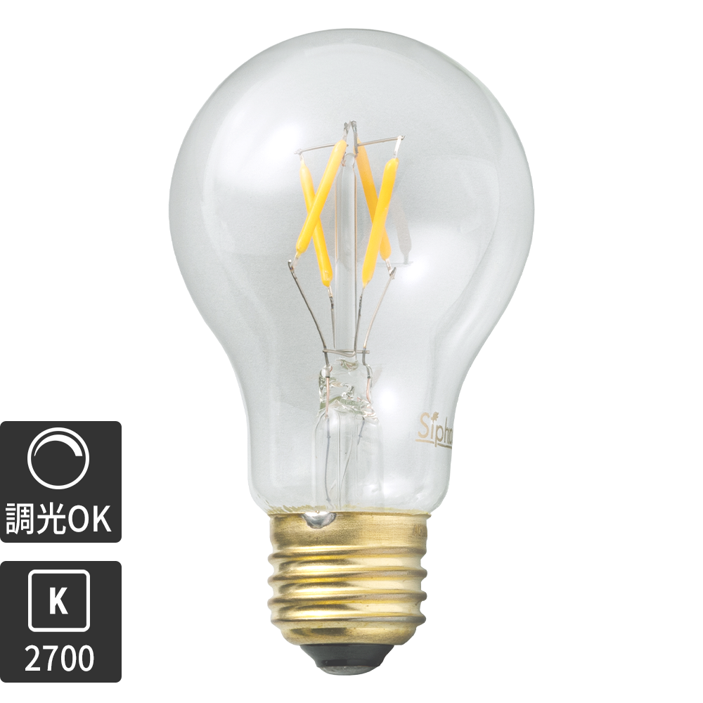 | 商品の特徴 | ビンテージLED電球 LEDエジソン(E26)60W相当 2700K | LT-BB002-06-G141。LED電球 フィラメント シャンデリア球 E26 60形 電球色 クリア 全方向。フィラメントLED電球「Siphon」 Ball95 LDF34D Tミラー ボール95 Only One。imgrc0085904247.jpg。商品の説明はありません | ||